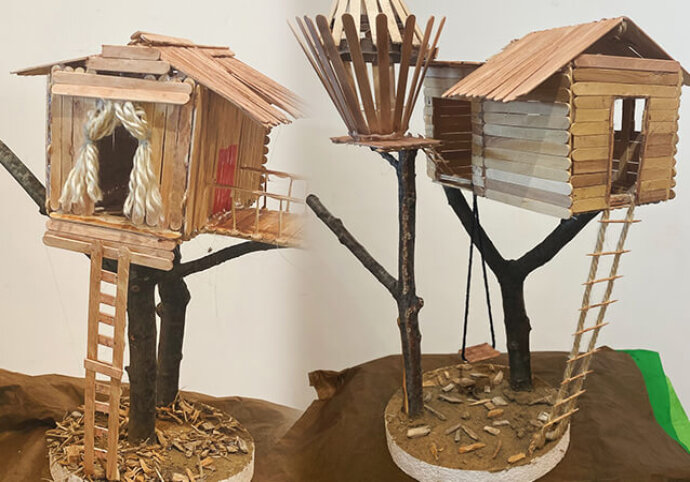 Students will learn how to create a 3D model from a 2D design. They will play and experiment with the laws of physics as it applies to an artistic outlet in the construction of their own mini tree house.